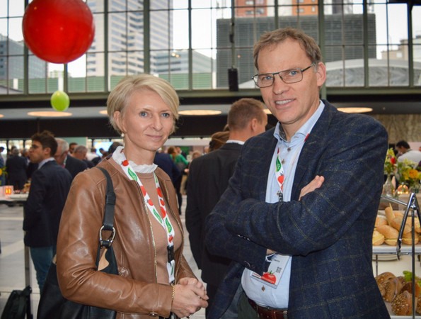 Petra Veldman en Paul Stoffels van Stoffels Tomaten op het Global Tomato Congress in 2019
