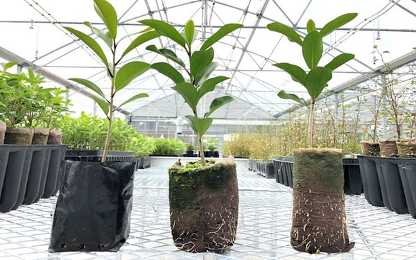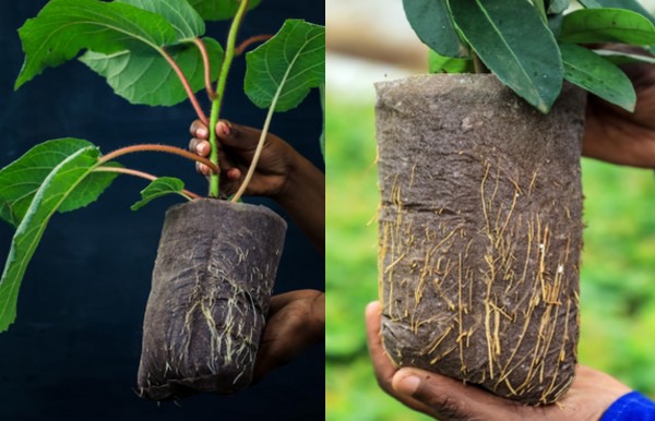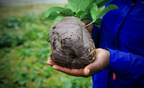 Zodra de planten zijn overgezet in het veld zullen luchtgesnoeide worteluiteindes in dezelfde richting door blijven groeien, wat leidt tot een natuurlijker wortelsysteem zonder de deformaties die zijn waargenomen bij plastic zakken, aldus Darran.