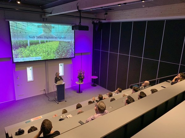 Naast Colinda de Beer spraken ook Kevin Kleijwegt van Hoogendoorn en Danny den Hollander van Beekenkamp. Ook zij deelden tips en eigen ervaringen. Zo adviseerde Kevin om als teler niet je mail te openen op de klimaatcomputer en de 3-2-1 back up-regel te gebruiken (originele data, back-upschijf en in de cloud met een wachtwoord erop).