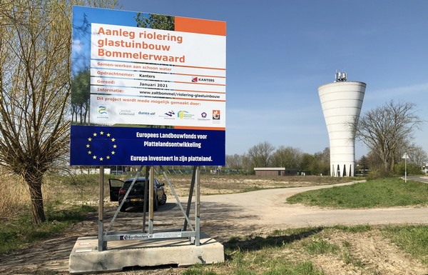 In Zaltbommel werken de gemeente en Waterschap Rivierenland samen met tuinders en drinkwaterbedrijf Dunea om water met gewasbeschermingsmiddelen en meststoffen uit de hele Bommelerwaard apart te zuiveren. Deze samenwerking, die een gezamenlijke inzameling, aparte afvoer en zuivering van afvalwater realiseert, is uniek in Nederland. De aanleg van deze gezamenlijke afvalwaterzuivering gaat op 20 april van start. Het bouwbord is afgelopen weekend geplaatst.
