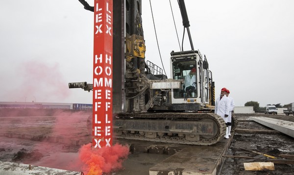 Het slaan van de eerste paal van het nieuw te bouwen complex voor arbeidsmigranten in het Westland