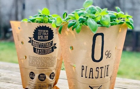 REWE en ECF Farmsystems testen nieuwe manieren van productverpakking. Het in Berlijn geteelde product 'hoofdstadbasilicum' wordt per direct 100% plasticvrij verpakt. Er wordt zowel afgezien van het gebruik van de trechtervormige plastic zak (sleeve), alsook van de plastic pot. De hoofdstadbasilicum wordt in plaats daarvan uitsluitend in recyclingpapier verpakt.