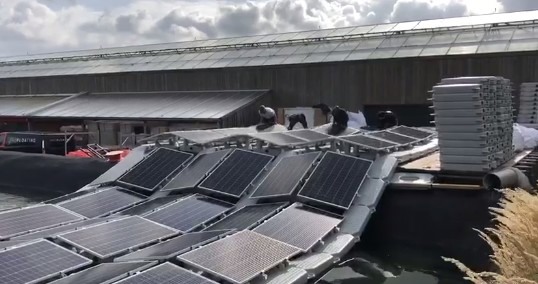 “En ook het onderhoud is makkelijk, want je kunt gewoon over de installatie op het water lopen en het bassinwater gebruiken om de panelen te reinigen”, vult Hans aan alvorens hij nog eenmaal terug naar de rekensommetjes keert. “2,5 eurocent voor de dagkoers stroom van het net wordt op de factuur al snel een dubbeltje. Dan is voor zo’n 5 eurocent oogsten vanuit het bassin gewoon heel interessant. Ook voor grote investeringsfondsen die inmiddels aankloppen om mee te investeren in duurzame projecten zo merken wij. Ook dat kan zeker een duwtje in de goede richting zijn voor de nog twijfelende teler.”