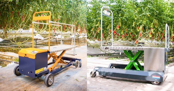 Om deze reden heeft Steenks speciale bladplukwagens in haar assortiment. Deze wagens rijden elektrisch op het buisrailsysteem en hebben een in hoogte verstelbaar plateau. De minimum plateauhoogte is zeer laag, waardoor je met het plateau net boven de buis kan staan. Dit leidt tot een vereenvoudiging van de arbeid en tot een betere continuïteit in het werk. Hierdoor kan men op iedere gewenste hoogte het werk plezierig en met een beter rendement uitvoeren. Bekijk hieronder hoe de wagen werkt.
