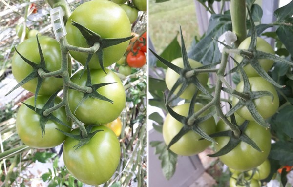 De tomaten links zijn normaal gevormd. Bij de tomaten rechts stammen de oudste exemplaren (dichts bij de steel) uit defecte voortplantingscellen. Zij zijn beduidend kleiner dan de later gevormde exemplaren. Bron: UGent