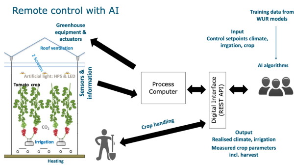 Het idee was om het AI-systeem op autonome wijze beslissingen te laten nemen, beslissingen die normaal gesproken door de teler worden genomen. Dit kan variëren van het aanpassen van de klimaatcomputer tot de keuze wanneer wat wordt geproduceerd en welke bronnen vervolgens worden gebruikt.