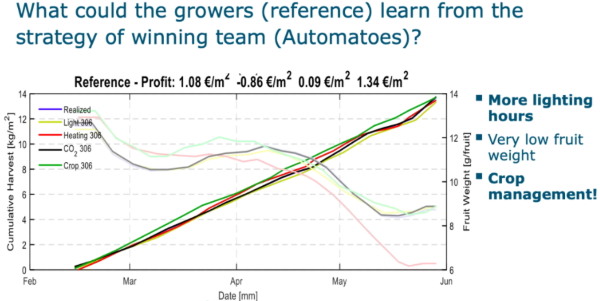 Aan het eind van Silke’s presentatie keek ze ook naar eventuele verbeterpunten van de referentietelers. “We hebben onze ‘meest fancy’ modellen gebruikt,” zei ze, “en geanalyseerd of de telers een beter resultaat zouden hebben behaald als ze delen van de strategie van Automatoes hadden gebruikt.”