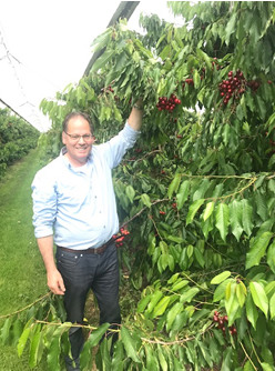 Tholen - Het Hollandse kersenseizoen is bij Van Randwijk en Van Doorn Fruit momenteel in volle gang. "De afzet verloopt erg goed. Europees gezien zijn er een stuk minder kersen en daar plukken wij nu de vruchten van", vertelt Gijsbert van Randwijk. Hij teelt zelf op een areaal rond de 5 hectare kersen onder de kap in de Hoeksche Waard. Afzet vindt plaats richting de binnenlandse groothandel en via enkele eigen kramen, waaronder een heuse Kersen Drive-In op de locatie in Mijnsheerenland.