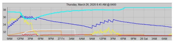 De blauwe lijn in de grafiek in figuur 2 vertegenwoordigt het gewicht en de pieken tonen het gewicht van het irrigatiewater dat wordt toegevoegd aan de planten. Telers kunnen de grafiek omkeren en een grafiek creëren waarbij de pieken staan voor de introductie van zuurstof in het wortelgebied. Terwijl de planten het water uit het groeimedium opnemen, komt er lucht bij met veel zuurstof. Te veel water komt dan minder vaak voor als op die manier naar de grafiek wordt gekeken.