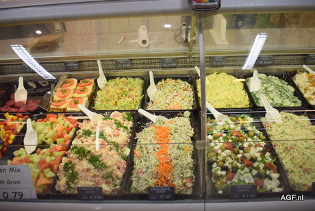 Wat ook altijd goed loopt, zijn de zelfgemaakte salades. Zeker tijdens de afgelopen hittegolf konden ze het met de productie daarvan haast niet bijbenen. VersBest heeft een kleine koude keuken. Dat maakt dat uitbreiding van het gemaksassortiment niet aan de orde is. “Sommige salades zijn al sinds 2009 hetzelfde. Dat waren toen succesvolle recepten van de vorige eigenaar. Nu zijn dat nog steeds de hardlopers, klanten blijven er voor terugkomen. Gemak loopt als een trein en misschien is uitbreiden wel een kans, maar het ontbreekt ons aan ruimte, zowel om uit te stallen als om te maken. Bovendien, waarom veranderen als dit totaalconcept van de winkel zo goed loopt?”