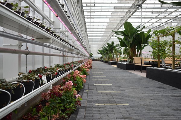 Er staan begin juli wat bloemen en seizoenskruiden in de demokas aan de Hoogzandweg, netjes op een rij, boven elkaar. “Een vorm van Vertical Farming zou je dat kunnen noemen,” legt Piet uit. “Het is zeker iets waar we naar kijken en als de tijd er rijp voor is, kunnen we hierin investeren. De kas is er voor gebouwd maar op dit moment is het nog niet rond te rekenen.