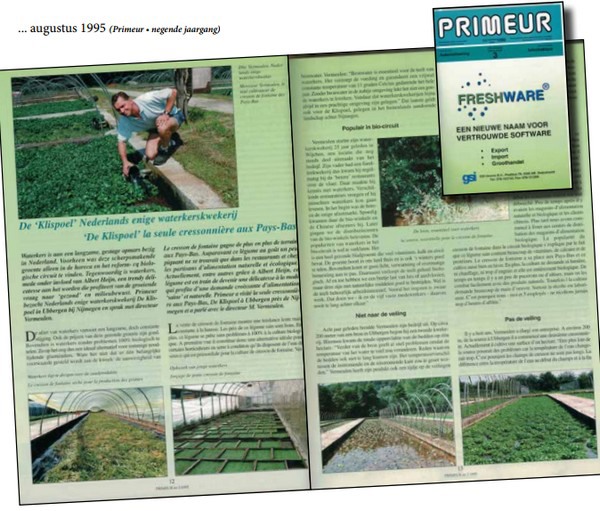 Dat beviel hem goed en toen de vraag toenam, huurde Norbert een perceel in Wijchen. Door de kwaliteit van het water kon hij daar maar beperkt telen, dus toen er in 1983 een perceel vrijkwam in Ubbergen, greep hij zijn kans. Daar is de kwekerij nu nog gevestigd. “Dit is een goede plek voor waterkersteelt, omdat het dorp gelegen is aan de voet van een stuwwal met veel natuurlijke bronnen. Hier groeide waterkers zelfs van nature in de sloot”, vertelt Cindy.