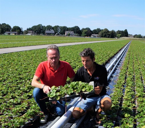 En hij had lef. Zo bouwde hij niet alleen de hoogste aardbeienkas van Nederland, maar experimenteerde ook met hangend stekken onder glas. “Op den duur had ik er over. Dan kun je twee dingen doen: weggooien of stekken. Ik heb ze buiten gestekt en werd zo min of meer per ongeluk plantenkweker. Inmiddels hebben we buiten trayvelden met vijf miljoen planten. Die leveren we aan andere plantenkwekerijen en aardbeienkwekers in Nederland en de EU.”