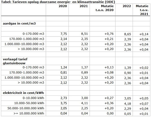 Tholen - De regering heeft nieuwe tarieven voor de opslag duurzame energie (ODE) voor de komende twee jaar vastgesteld. De ODE is een extra heffing op het gebruik van elektriciteit en aardgas, waarvan de opbrengsten gebruikt worden om de subsidieregeling Stimulering Duurzame Energieproductie (SDE) te bekostigen.