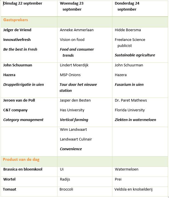 Onze productmanagers delen er de laatste trends en inzichten op het gebied van verschillende gewassen, zoals tomaten, watermeloen, ui, wortel en kool. Vergeet niet je bezoek in te plannen aan onze productmanagers of onze vertegenwoordigers. Dat kan op onze site.