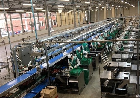 De verwerkingslijn die op volle capaciteit 56 medewerkers vraagt. (NB: foto genomen voor de Covid-noodtoestand)
