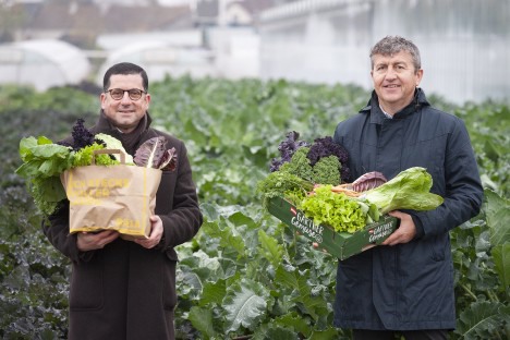 Marcel Haraszti en Josef Peck met hun eerste geoogste wintergroenten