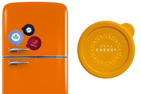 Zuivelproducten worden vaak in bekers verpakt, uitgerust met een wegwerpdeksel van plastic. Orango heeft als gevolg daarvan een duurzaam en herbruikbaar alternatief uit levensmiddelecht silicone ontwikkeld. Een ingebrachte magneet in het midden van de herbruikbare deksel maakt deze in een handomdraai tot een koelkastmagneet. "Op deze wijze wordt de deksel een innovatief reclamemiddel, aangezien de opgedrukte merkboodschap regelmatig in de keuken van de klant waargenomen kan worden. De deksel combineert zo de reclame-eigenschappen van een gebruikelijke koelkastmagneet met het functionele van een keukenvoorwerp", vertelt Theo Sandkötter, die het bedrijf Orango samen met zijn vader runt.