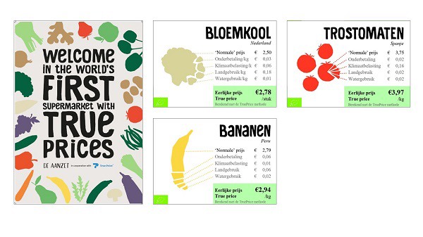 Een kilo bloemkool uit Nederland is vanaf vrijdag geen € 2,50, maar € 2,78. Een kilo bananen gaat van €2,79 naar €2,94. En een kilo trostomaten gaat van € 3,75 naar €3,97. Op vrijdag 27 november, ‘Black Friday’ start de eerste supermarkt ter wereld in de Amsterdamse Pijp met het tonen en laten betalen van de echte prijs. Dit doet deze supermarkt door middel van toepassing van True Pricing – het tonen en verbeteren van de Echte Prijs. Een primeur in de wereld stelt True Price. Katja Schuurman gaat als eerste True Price boodschappen doen.