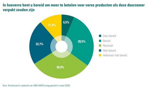 Een vijfde van de consumenten zegt bereid te zijn om gemiddeld 12 procent meer te betalen voor een duurzamere verpakking om de paprika of gesneden sla. Maar hoewel consumenten duurzaamheid een belangrijk thema vinden, blijft het kennisniveau relatief laag over welk type verpakking nu daadwerkelijk duurzaam is. Dit vormt een