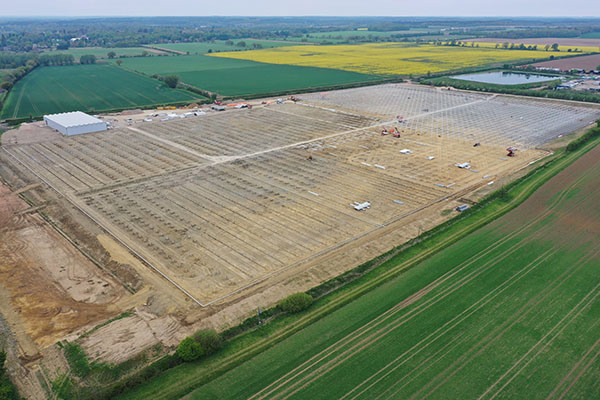 Hoewel de Bom Group vrij veel ervaring heeft op de Britse markt en bekend is met grote glastuinbouwprojecten, is het 29 hectare grote project dat ze momenteel in Norfolk, in het Verenigd Koninkrijk bouwen, uniek. Ondanks de coronacrisis bouwen ze (zich houdend aan de gezondheidsvoorschriften) met volle kracht aan de 29 hectare kassen die aan het eind van dit jaar in gebruik zullen worden genomen.