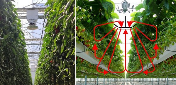 De lucht die door de inblaasunit ingebracht wordt, wordt door de Nivolatoren verticaal en horizontaal homogeen verdeeld. Door verticaal te circuleren, creëer je luchtbeweging tussen de planten wat vochtophoping voorkomt en daarmee plantactiviteit creëert. Door activiteit terug te brengen in het gewas, zal de ziektedruk verlagen en de groei van plant worden gestimuleerd. Ook wordt droge lucht gemengd met de kaslucht en zal er een meer uniform klimaat ontstaan.