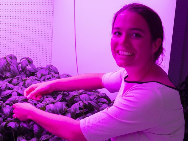 Lisanne Meulendijks, Delphy, is dagelijks bezig met onderzoek in vertical farm proefopstellingen. “Een plant in een klimaatcel heeft minder ruimte door de compactere opstelling. Daardoor is de invloed van de plant op zijn omgeving relatief veel groter. Die interactie tussen de plant en zijn omgeving is iets om rekening mee te houden. Dat geldt voor zowel het technische design als de teeltstrategie. Ons praktijkonderzoek is erop gericht om de teeltstrategie aan te passen waarbij rekening wordt gehouden met deze plantinvloeden.”