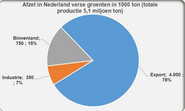 In Nederland en België is de internationale handel van groot belang. Bij groenten is het vooral de export waar de Nederlandse sector op drijft. Naar schatting gaat van alle in Nederland geteelde groenten driekwart als vers product de grens over. Bij België is dat naar schatting de helft. In België is bij groenten de (diepvries)industrie een grote speler. Jaarlijks gaat er 1,2 miljoen ton groenten naar de industrie. Voor een niet onbelangrijk deel gaat het hierbij ook om ingevoerde groenten uit vooral Nederland. In het afgelopen jaar exporteerde België maar liefst 1,55 miljoen ton diepgevroren groenten, ter vergelijking: Nederland exporteerde ruim 0,3 miljoen ton diepgevroren groenten. Bij Nederland speelt de re-export ook bij groenten een belangrijke rol. In het afgelopen jaar is er naar schatting 1,2 miljoen verse groenten via Nederland verder Europa in gegaan. Bij België ging het daarbij om een kleine 100.000 ton verse groenten.
