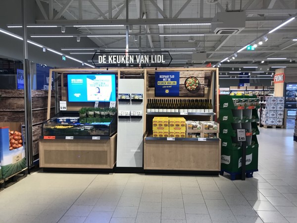 "Bij het binnenkomen, kom je meteen in de dinerwereld terecht waar je dagelijks alles voor een vers avondmaal of een verse lunch snel kan terugvinden. Een speciale hoek met recepten uit ‘De Keuken van Lidl’ moet de klant qua gerechten inspireren. In een andere hoek vind je een verse sinaasappelpers terug en een gekoeld meubel met simpele en snelle slaatjes, verse maaltijden en smoothies. In de dinerwereld vind je uiteraard ook het verse fruit en de groenten terug, net als het verse vlees, het gevogelte en de veggie- en veganproducten", aldus de retailer.