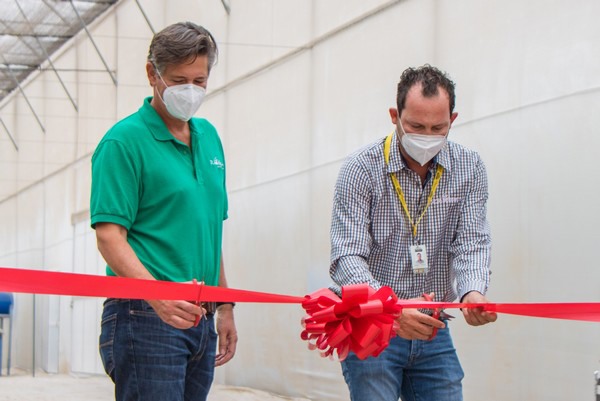 Theojary Crisantes, COO (links) en Jonathan Alcaron knippen het lintje door in de nieuwe faciliteit in Culiacan, Sinaloa, Mexico.