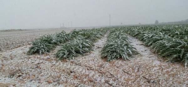 "Het zuiden van Spanje kampt met te lage temperaturen, terwijl zware vorst het midden en het noorden van Spanje teistert. De groenten die daar op de velden groeit heeft te maken met zeer strenge vorst en een dik pak sneeuw. Dat heeft al voor flink wat schade gezorgd. Voor citrus moeten we nog even afwachten hoe groot de schade gaat zijn, het is nog te vroeg om daar wat over te zeggen. Toch ziet het er naar uit dat citrus weldegelijk schade heeft opgelopen. Onze Spaanse leveranciers hebben tot nu toe heel weinig kunnen werken en daardoor is er de afgelopen dagen weinig geladen”, aldus Cédric.