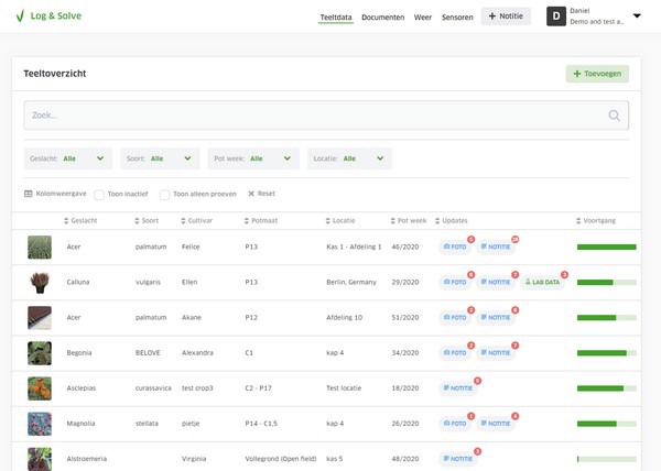 Uniek aan Log & Solve is dat telers erg gedetailleerd op hun teelt in kunnen gaan. “Handig voor telers met heel veel verschillende soorten potplanten, maar bijvoorbeeld ook voor een aardbeienteler met meerdere rassen en verschillende plantmomenten. Andere systemen geven data voor een hele kas, wij kunnen de teler helpen meer in te zoomen op een specifieke partij.”