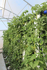Het 'Intensive Vertical Recirculating Hydroponic System' plaatst de planten boven elkaar, tot wel drie rijen hoog. "Dit systeem heeft tot zes tomatenplanten per vierkante meter, drie keer zoveel dan in een traditioneel systeem. Omdat de teeltcyclus niet langer dan vier of vijf maanden duurt, kunnen telers twee tot drie teelten per jaar uitvoeren en daarmee hun productie verdubbelen," zegt Donald Gartland van NGS.