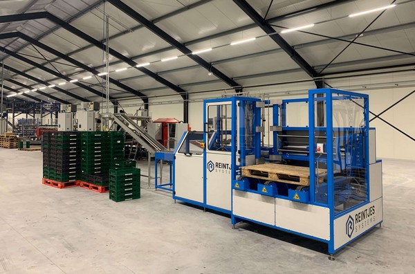 Reintjes Systems bereikte in 2020 een akkoord over de ontwikkeling en realisatie van een volautomatische klapkratten uitvouwmachine inclusief Europallets depalletiseerder en geautomatiseerde rollenbaan voor het transportproces van de klant zijn klapkratten.