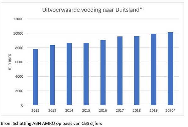 Uitvoerwaarde Nederlandse voeding naar Duitsland stijgt
