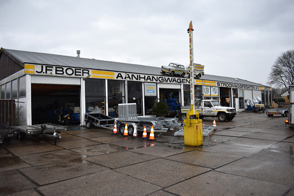 Naast de aggregaten verhuurt J.F. Boer ook aanhangwagens. "Daarmee zijn we destijds gestart om in de zomer - als het rustig was in de aggregaten - goed aan het werk te blijven, maar inmiddels gaat het werk jaarrond wel door. De aanhangwagens verkopen we vooral aan particulieren, maar ook een tuinder die zijn buisrailwagens bijvoorbeeld naar een andere kas moet verplaatsen weet ons wel te vinden. Het zorgt voor voldoende aanloop, de hele dag is het hier een komen en gaan."