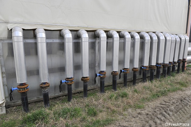 De kassen zijn verdeeld in twee delen, niet ver van elkaar. In elk deel is er een centrale houtsnipperketel die het water verwarmt. Er zijn twee tanks, één met 100 kubieke meter en één met 300 kubieke meter. “Op een diepte van 45 à 50 meter onder onze kassen lopen buizen die zorgen voor de waterstroom. De buisjes hebben een diameter van 25 mm en het water heeft een temperatuur van 30 graden. Daarna gaat het terug naar het depot en wordt het via een warmtewisselaar opnieuw verwarmd. Hierbij wordt geen afval geproduceerd”, zegt partner Filippo Magagna.