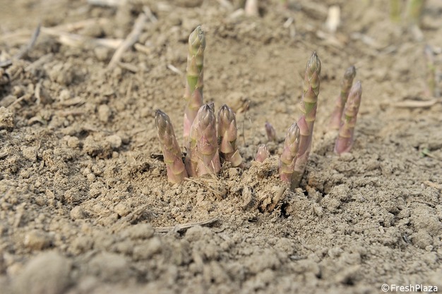 Italiaanse biologische asperges geteeld met behulp van 'vloerverwarming'