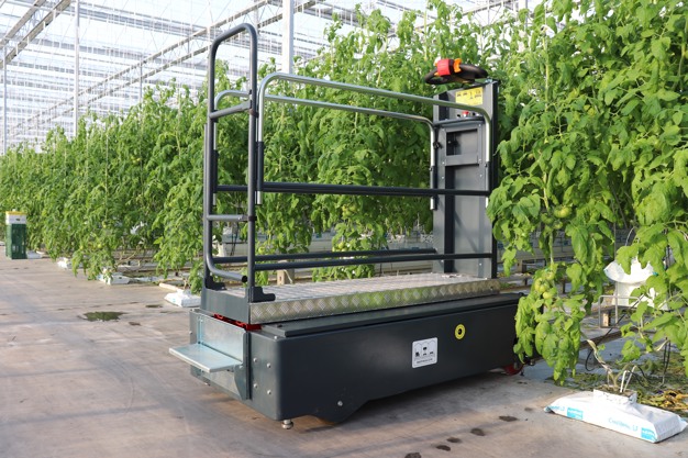 Het werkplatform is gemonteerd op een hydraulisch systeem met drie scharen en kan eenvoudig worden bereikt via een opvouwbare trap. Tijdens het werken kan het platform in hoogte worden versteld. Het platform heeft precies de grootte om over de verwarmingspijpen tussen de planten door te kunnen rijden, maar is ook breed genoeg om de medewerker dicht bij de planten te laten komen.