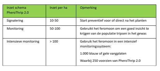 Met behulp van PheroThrip 2.0 kan dus o.a. de Japanse bloementrips eerder worden gesignaleerd. Hier kunnen dan tijdige de benodigde maatregelen tegen getroffen worden. Daarnaast werden er op de vangplaten zowel mannelijk alsook vrouwelijk tripsen gevangen. Dit zorgt een flinke verlaging van de reproductiesnelheid.