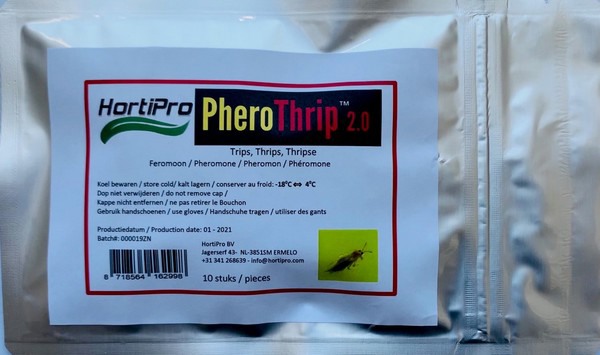 De werkingsduur van de PheroThrip 2.0 is 6 tot 8 weken. Ze zijn per 10 stuks in een hersluitbare verpakking verkrijgbaar en kunnen tot 2 jaar in de vriezer (-18⁰C) bewaard worden.