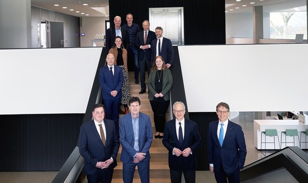 Op de voorgrond v.l.n.r.: Christiaan Olde Bolhaar en Ted Vollebregt, directeuren van de nieuwe joint venture, en Moritz Böcking en Bernd Wehming, directeuren Klasmann-Deilmann Group.