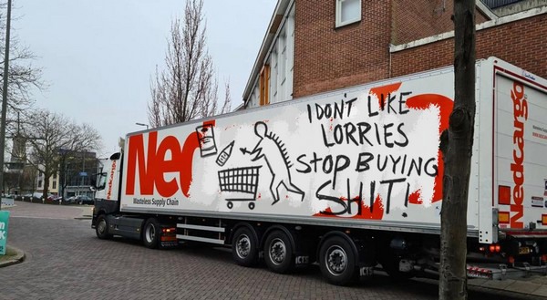 In het weekend van 27 maart zijn op een parkeerplaats in London (VK) 3 vrachtwagens van Nedcargo beklad. De vrachtwagens zijn met verf en graffiti voorzien van anti-globalisme en anti-consumptie slogans en tekeningen. Onderzoek wijst uit dat deze gemaakt zijn door de bekende graffiti kunstenaar Banksy.