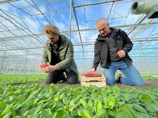 Gert-Jan Zonneveld Piek (rechts van Rungis) op bezoek met chef Joris Bijdendijk bij Radijsteler JongFresh
