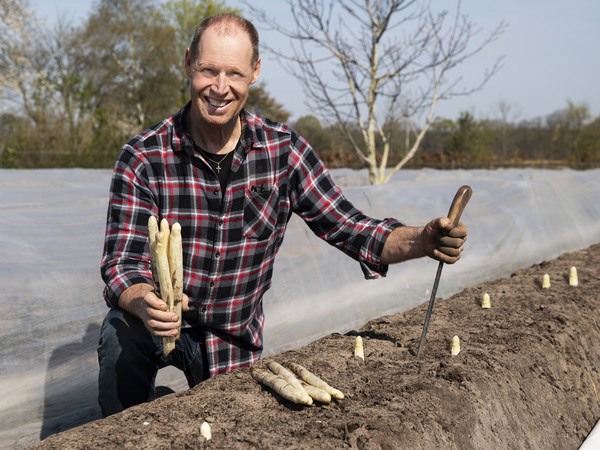 Aspergeteler Erik Verhoeven. Eén van de telers die Ekoplaza helpt om om te schakelen naar biologische teelt.
