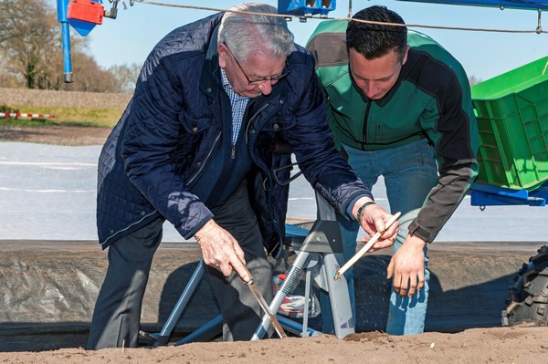 De eerste steek van de Brabantse Wal asperge, rechts Ferry de Weert
