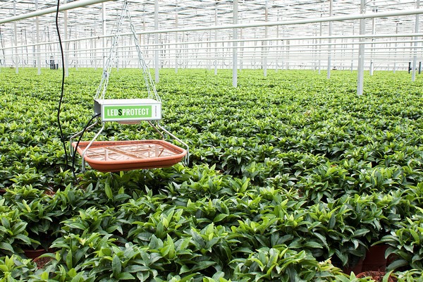 Reden om eens goed te googelen op zoek naar een oplossing. Die vond hij in de UV-lichtval van LedsProtect. Na zijn zoektocht op internet nam Dick contact op Peter Kerkhof. Hij ontwikkelde de UV-lichtval en kwam bij Dick in de kas langs om één lamp op te hangen. Als test. “Toen bleek al snel dat ik heel veel motjes ving. Ik was daarmee snel overtuigd.”