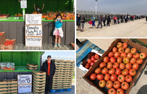 Binnen een week heeft het team van Platinum Produce 21 vrachten tomaten verkocht, elk met 80 bakken tomaten. Mensen uit heel Zuidwest Ontario zijn urenlang naar hun kraam gereden om de tomaten te kopen. Dat is het resultaat van een Facebook-post van Bonnie Verbeek van Platinum Produce.