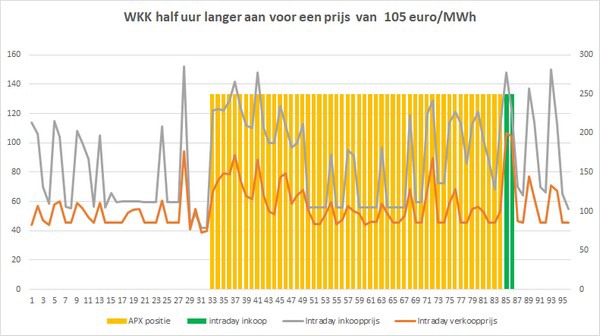 - Flexibiliteit bij onverwachte situaties. Ten vijfde kan intraday bij een WKK storing/onderhoud een verkochte positie weer terugkopen zodat je onverwachte onbalanskosten vermijdt.