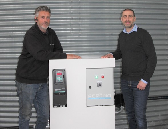 Frans van Hulten, teeltmanager Dutch Berries, en Nadir Laaguili, directeur Agrona, bij een dagvoorraadsilo met het OxyBull beluchtingssysteem